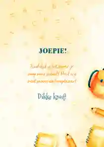 Je kiest een kaart uit onze collectie motiverende kaarten, of je maakt je eigen kaart helemaal zelf. Je kan zelf leuke teksten, foto's, figuren en kaders toevoegen zodat het echt jouw eigen kaart wordt. Bestel je voor 21:00 uur, dan doen wij je kaart diezelfde dag nog op de bus.