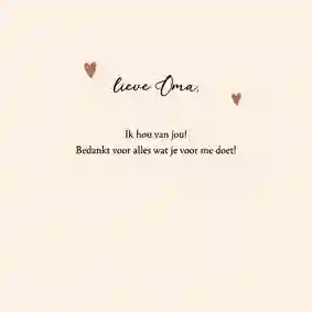 Onze opa en oma kaarten kun je helemaal persoonlijk maken met eigen teksten en foto's. Bijvoorbeeld een leuke foto van opa en oma, of eentje van jezelf natuurlijk!