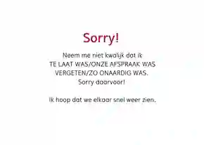 ✉️ Bestel je je sorry kaart op werkdagen voor 21:00 uur? Dan valt de kaart in 95% van de gevallen de volgende dag al op de deurmat. Zo komen je excuses in ieder geval niet te laat ;-)