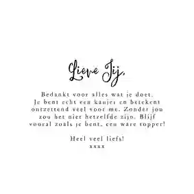 📞 Tip: Mis je een kaart in onze collectie? Neem dan contact op met ons klanttevredenheidsteam. Ze kijken graag samen met je naar de mogelijkheden voor een bijzondere wenskaart.