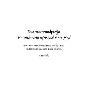 Wil je iemand echt in het zonnetje zetten? Bestel dan een cadeau bij je wenskaart. Voor iedere boodschap is er een passend kleinigheidje te vinden. Zo zijn er onder andere cadeautjes voor de volgende categorieën: Beterschap, Denken aan en Verjaardag. Bijna al onze presentjes passen trouwens gewoon door de brievenbus. Handig!