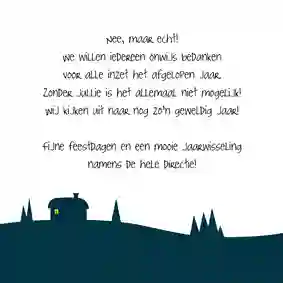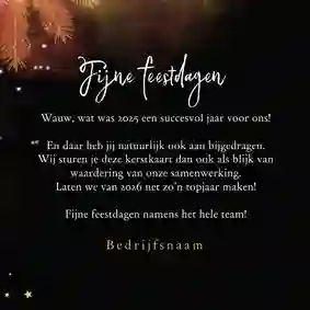 Bedankt voor de fijne samenwerking in [jaartal]. Wij wensen je warme feestdagen en een succesvol nieuwjaar.