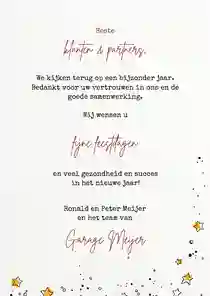 Vergeet niet om je medewerkers in de bouwsector tijdens de feestdagen een speciale blijk van waardering te sturen. Kerstkaarten voor medewerkers zijn een hartverwarmende manier om je dankbaarheid te tonen voor hun harde werk en toewijding gedurende het hele jaar. Laat je team weten dat je hun inzet waardeert en wens ze een vrolijke kerst en een voorspoedig nieuwjaar. Zo staat je kerstkaart voor de bouwsector als een huis!