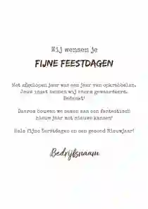 Zoek je een eenvoudige manier om waardering te tonen? Dan zijn zakelijke kerstkaarten voor bouwbedrijven een leuke optie. Kerstkaarten voor de bouw zijn niet alleen een warm gebaar, maar ook een slimme zakelijke zet. Ze versterken je zakelijke relaties en zorgen voor een goede indruk bij je partners in de bouwsector. Bedank klanten bijvoorbeeld voor een succesvol project, of stuur je zakelijke relaties een persoonlijke kerstgroet. Want met een leuke zakelijke kerstkaart weten je relaties dat ze op je kunnen bouwen!