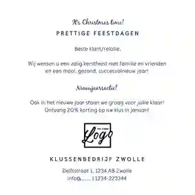 Zoek je een eenvoudige manier om waardering te tonen? Dan zijn zakelijke kerstkaarten voor bouwbedrijven een leuke optie. Kerstkaarten voor de bouw zijn niet alleen een warm gebaar, maar ook een slimme zakelijke zet. Ze versterken je zakelijke relaties en zorgen voor een goede indruk bij je partners in de bouwsector. Bedank klanten bijvoorbeeld voor een succesvol project, of stuur je zakelijke relaties een persoonlijke kerstgroet. Want met een leuke zakelijke kerstkaart weten je relaties dat ze op je kunnen bouwen!