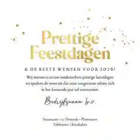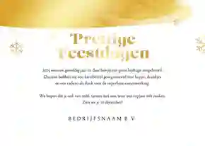 Een kerstkaart met logo is de ideale manier om je bedrijfsnaam nog eens onder de aandacht te brengen bij relaties. Daarnaast is het een mooie manier om medewerkers te bedanken voor hun inzet en samen vooruit te kijken naar het nieuwe jaar. In de kaartmaker kun je onze zakelijke kerstkaart met logo nog verder personaliseren. Pas de kleuren bijvoorbeeld aan naar jullie huisstijlkleuren, of voeg de bedrijfsslogan toe voor nog meer herkenbaarheid. Voor een extra luxe gevoel tippen we graag onze foliedruk kerstkaarten met logo.